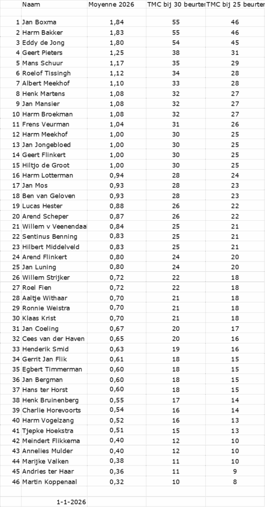 De speelsterke van alle leden, onafhankelijk van het speelmoment, wordt bijgehouden in de eigen gemiddelde monitor.