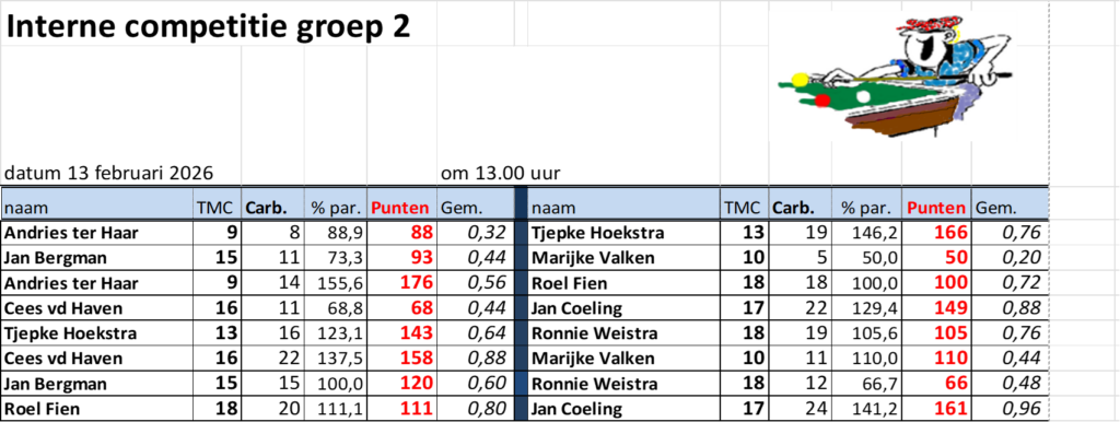 In de eerste tabel staan de punten van de eerste helft van dit seizoen. Er moeten nog een paar wedstrijden gespeeld worden.