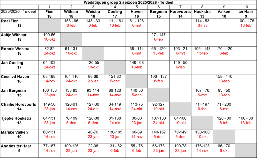 6 en 13 februari inhaalronden voor groep 1 en 2