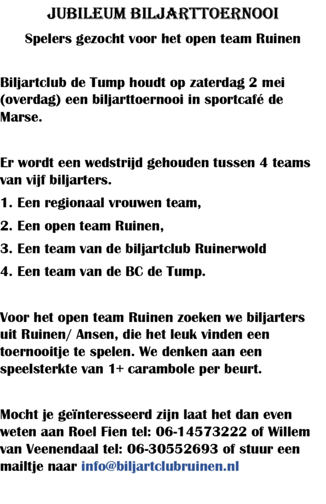 © 2026 Welkom bij Biljartclub "De Tump" Ruinen